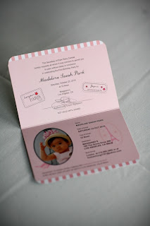 Decorations: I designed the invitations, which were made to look like a passport.